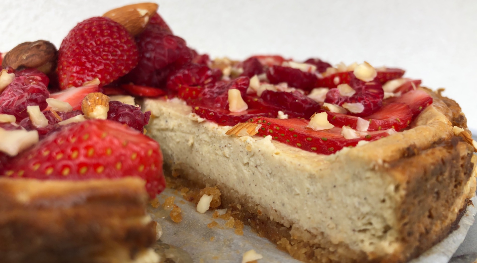 Tvarohová náplň - Tvaroh, Kokosové mlieko, Strúhaný kokos, Vanilkový lusk, Vajíčka, Med, Lieskové Orechy, Jahody, Maliny
